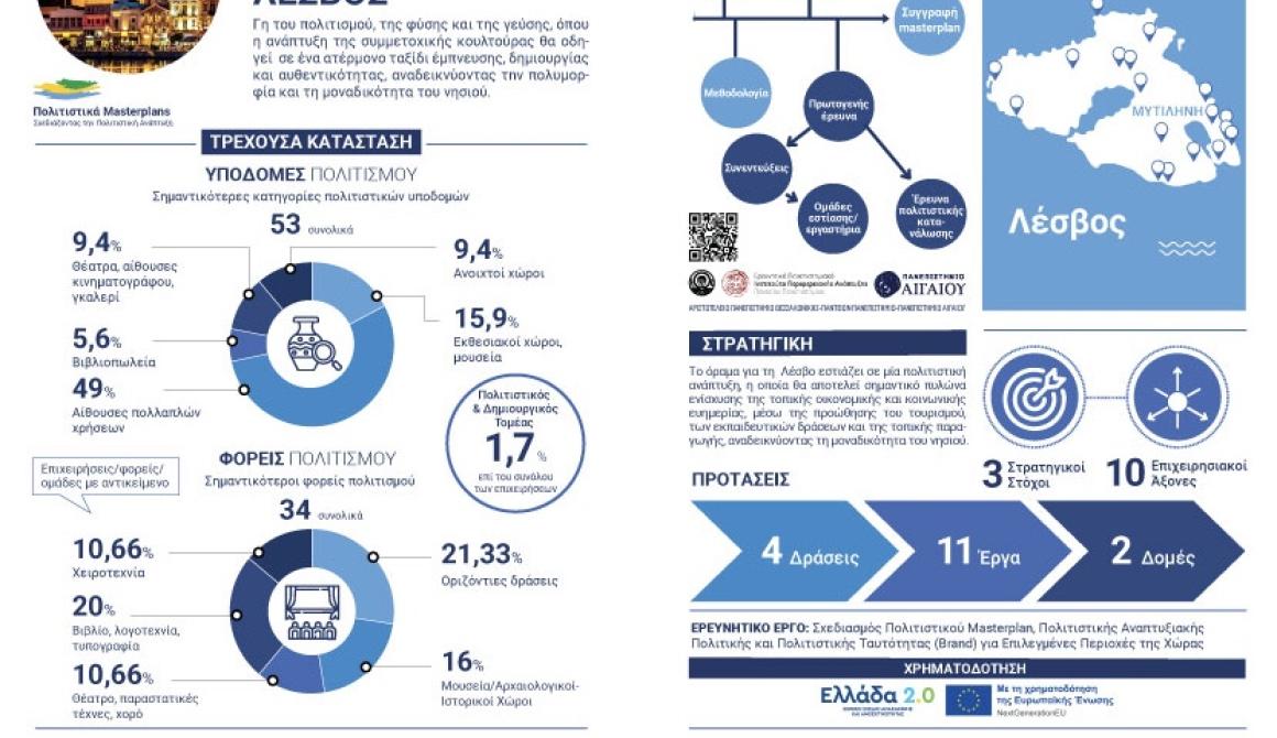 Το Υπουργείο Πολιτισμού σας προσκαλεί την Τρίτη 4 Νοεμβρίου 2025, στις 10:00, στo Επιμελητήριο Λέσβου στην παρουσίαση των Πολιτιστικών Masterplans των περιοχών Λέσβου, Λήμνου, Σάμου, Ικαρίας και Χίου που υλοποιήθηκαν στο πλαίσιο του έργου: